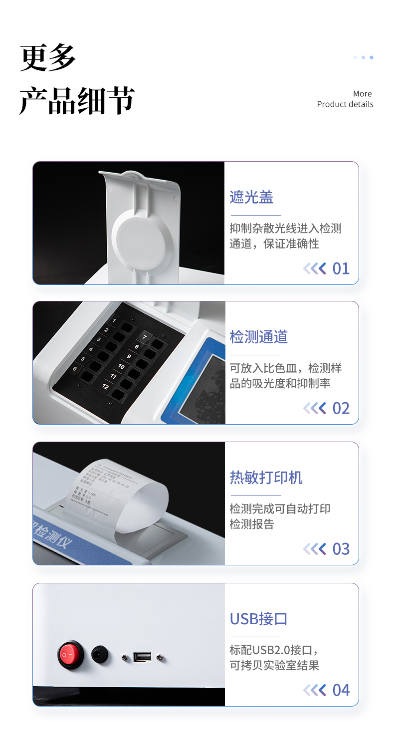 5. 測量方式:樣品顯色和測量為為標(biāo)準(zhǔn)1cm比色皿,無需轉(zhuǎn)移,提高檢測精密度。