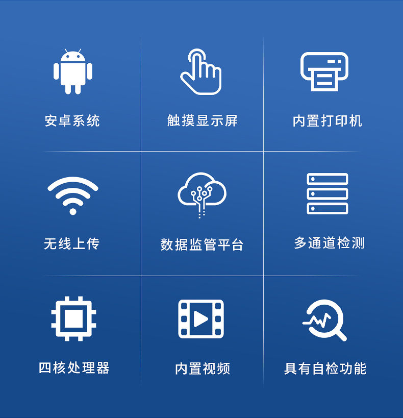1、安卓智能操作系統(tǒng),采用更加高效和人性化操作,儀器具有網(wǎng)線連接、wifi聯(lián)網(wǎng)上傳、GPRS無線遠傳功能,快速上傳數(shù)據(jù)。