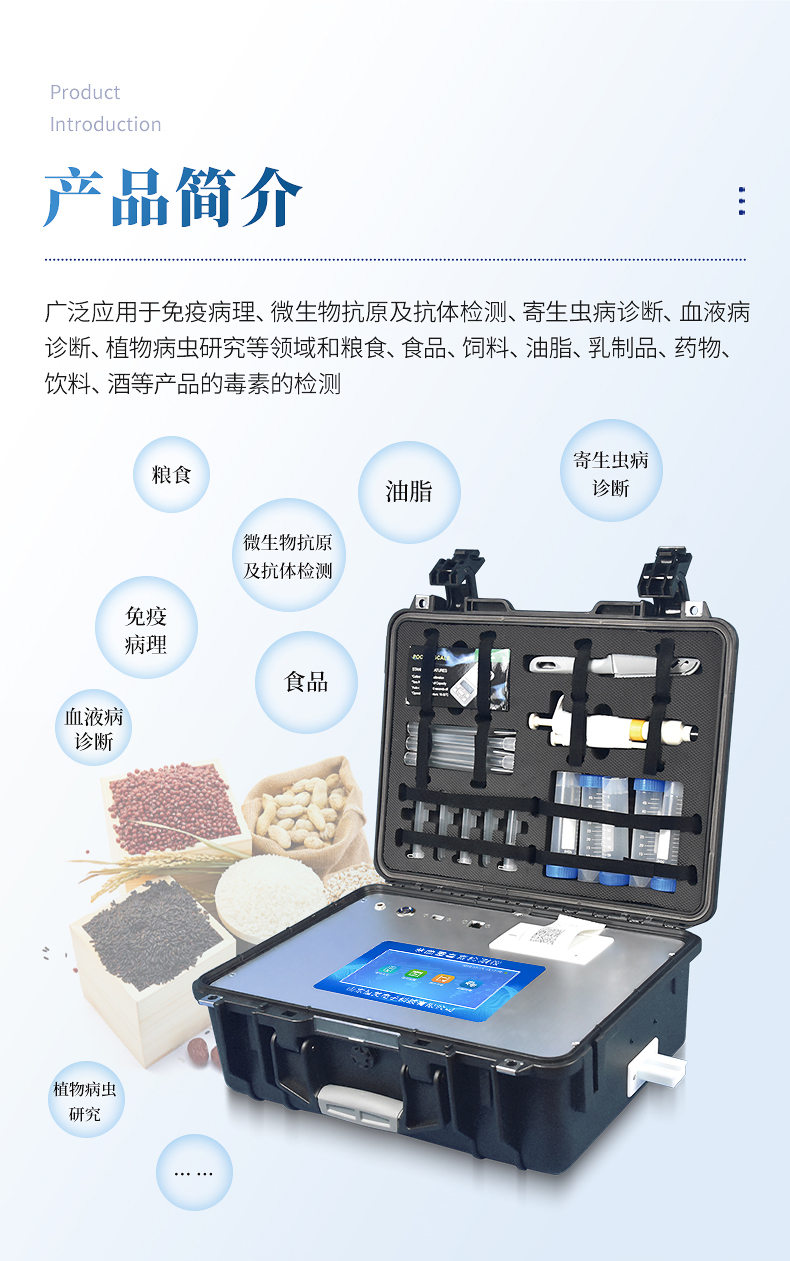 5、一體化主機(jī),包含食品安全檢測(cè)模塊、多通道農(nóng)藥殘留檢測(cè)模塊、膠體金免疫層析檢測(cè)模塊。
