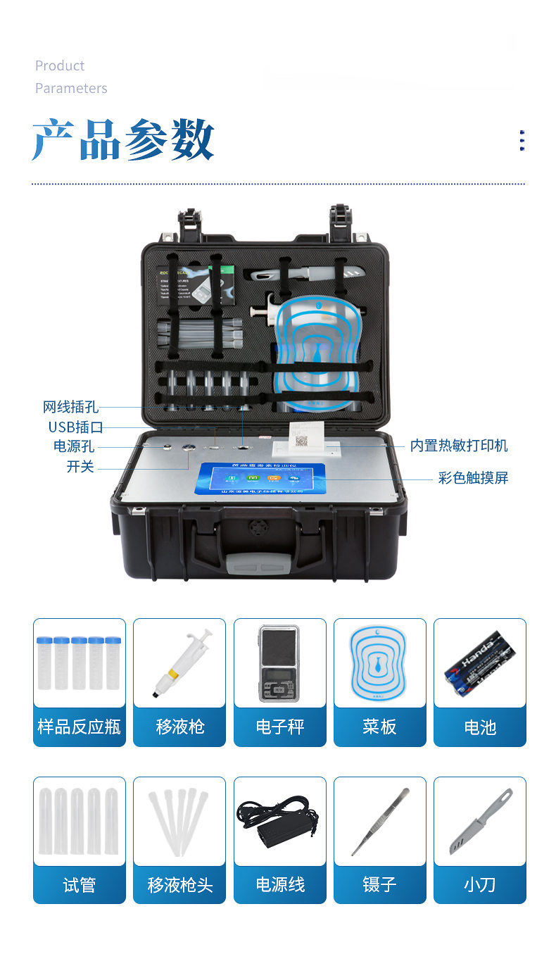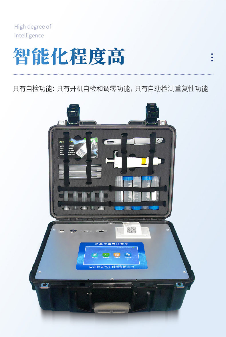 6、一體化便攜式快檢設(shè)備,滿足現(xiàn)場(chǎng)及流動(dòng)檢測(cè)使用需求,能夠在同一軟件下實(shí)現(xiàn)所有檢測(cè)項(xiàng)目的檢測(cè),并可通過同一窗口直觀顯示檢測(cè)結(jié)果。