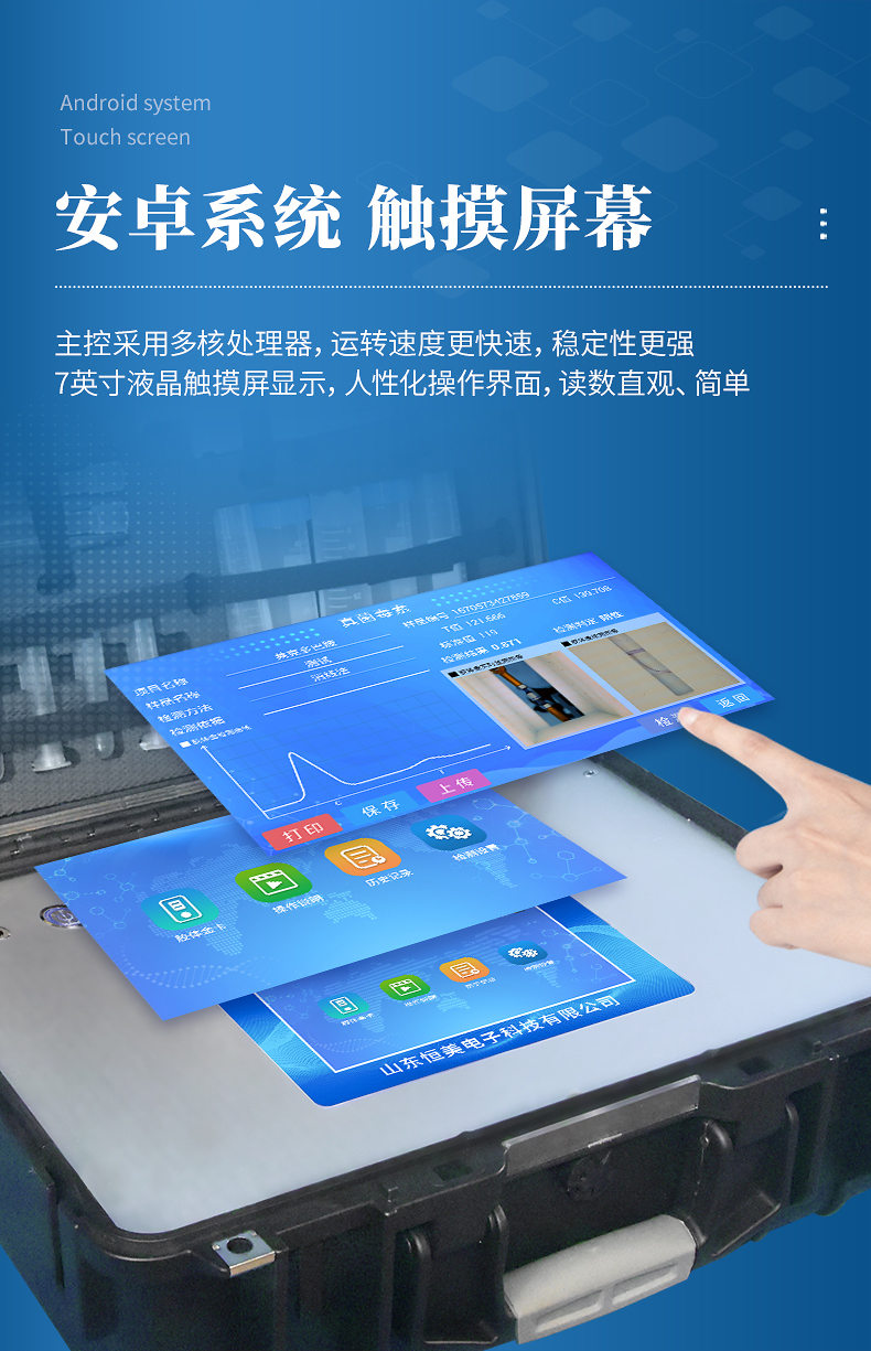 2、顯示方式:7英寸液晶觸摸屏顯示,人性化中文操作界面,讀數(shù)直觀、簡單。