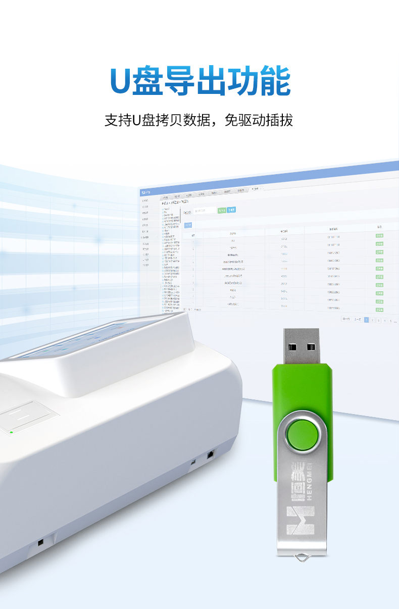 5、支持wifi、藍(lán)牙傳輸,數(shù)據(jù)可無線上傳;支持U盤拷貝數(shù)據(jù),免驅(qū)動插拔。
