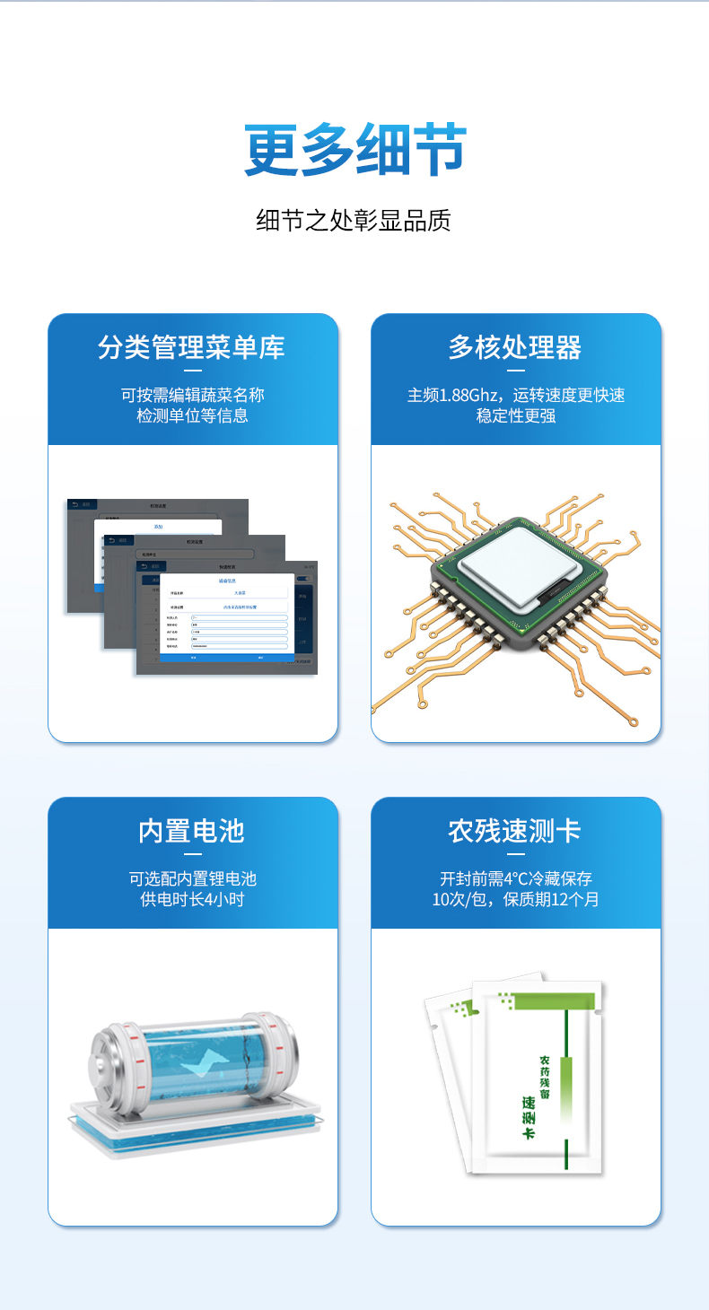 1、采用速測卡法,省卻冗雜的步驟,提高檢測體驗(yàn)和效率