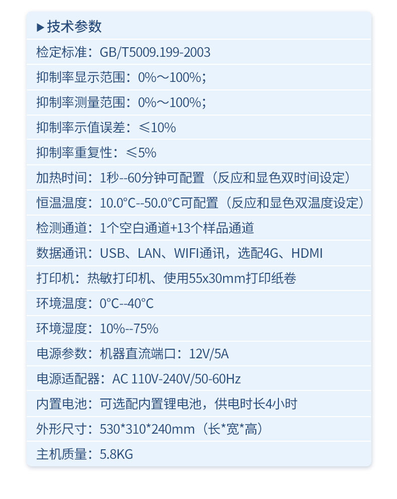 抑制率示值誤差:≤10%