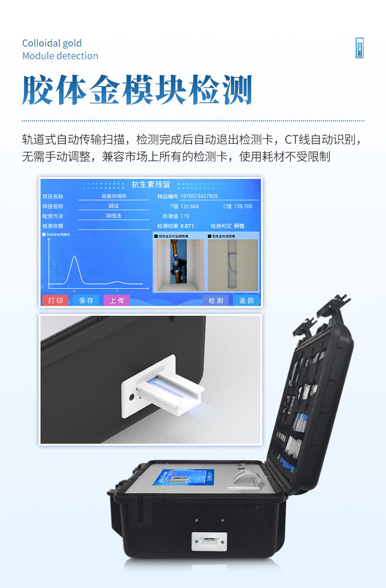 7、一體化便攜式快檢設(shè)備,滿足現(xiàn)場及流動檢測使用需求,能夠在同一軟件下實現(xiàn)所有檢測項目的檢測,并可通過同一窗口直觀顯示檢測結(jié)果。