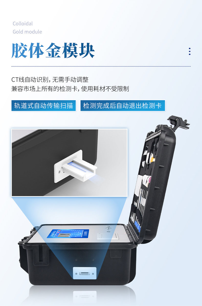 11、免疫層析檢測(cè)模塊檢測(cè)方式:軌道式自動(dòng)傳輸掃描,檢測(cè)完成后自動(dòng)退出檢測(cè)卡。