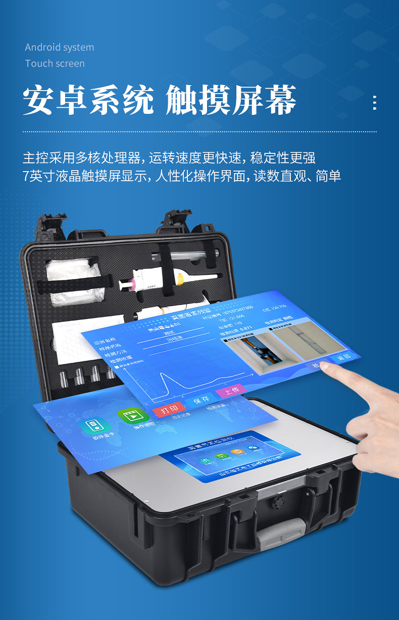 2、顯示方式:7英寸液晶觸摸屏顯示,人性化中文操作界面,讀數(shù)直觀、簡(jiǎn)單。