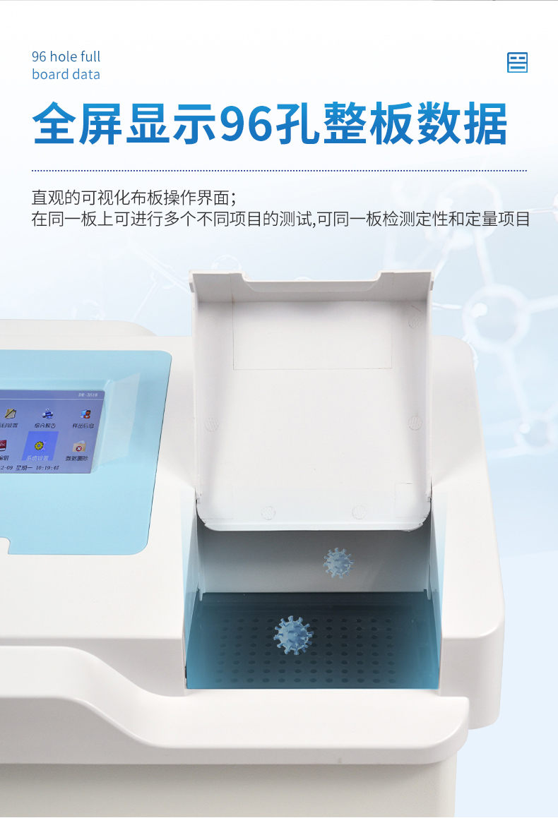 6. 在同一板上可進(jìn)行多至12個(gè)不同項(xiàng)目的測(cè)試,并可同一板檢測(cè)定性和定量項(xiàng)目。