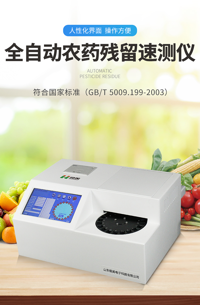 全自動農(nóng)藥殘留快速檢測儀是利用酶抑制原理和光電比色法原理研制而成。在一定條件下,有機磷和氨基甲酸類農(nóng)藥對膽堿酯酶正常功能有抑制作用,其抑制率與農(nóng)藥的濃度呈正相關(guān)。當(dāng)樣本提取液中有一定量的有機磷農(nóng)藥或氨基甲酸酯類農(nóng)藥存在時,酶活性受到抑制,吸光度變高。根據(jù)該變化率,可測定出樣本中農(nóng)藥的殘留量。