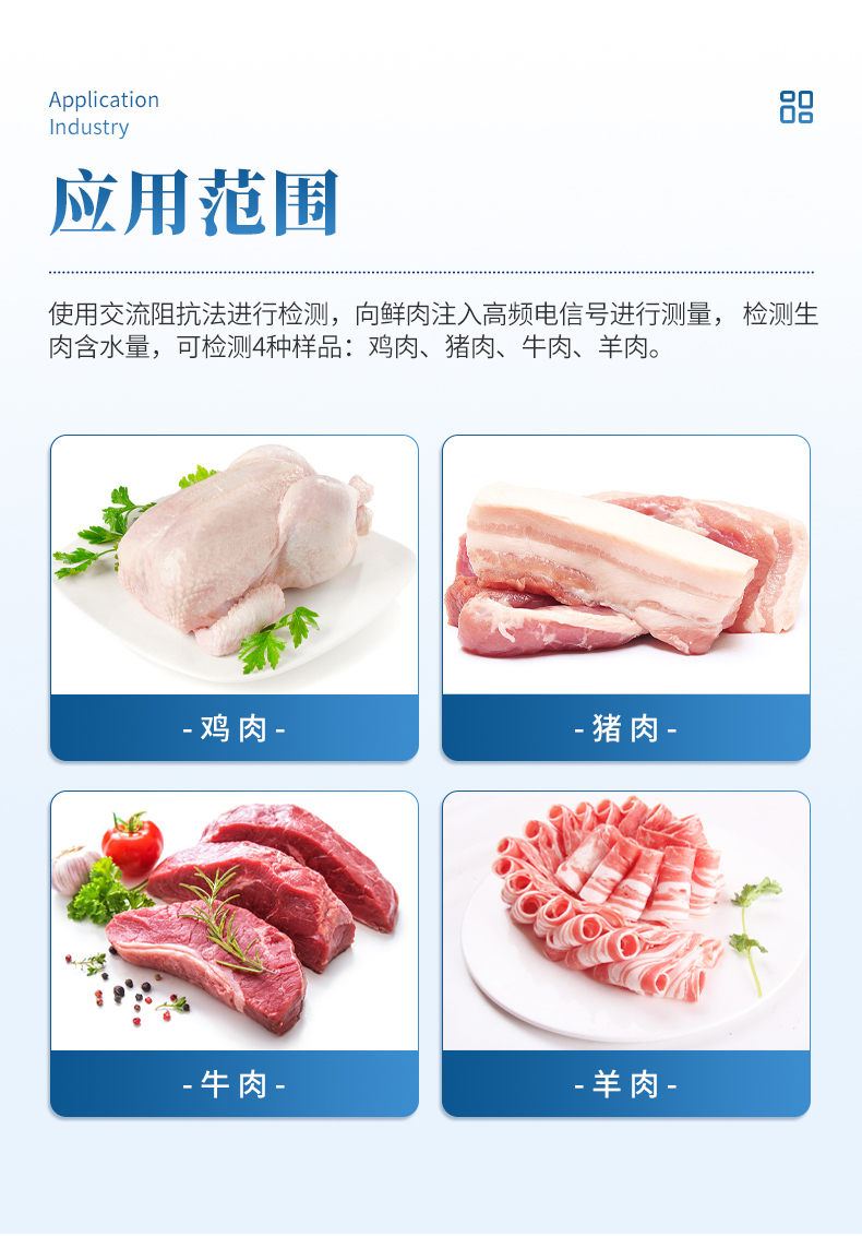 檢測(cè)生肉含水量,可檢測(cè)4種樣品:雞肉、豬肉、牛肉、羊肉。