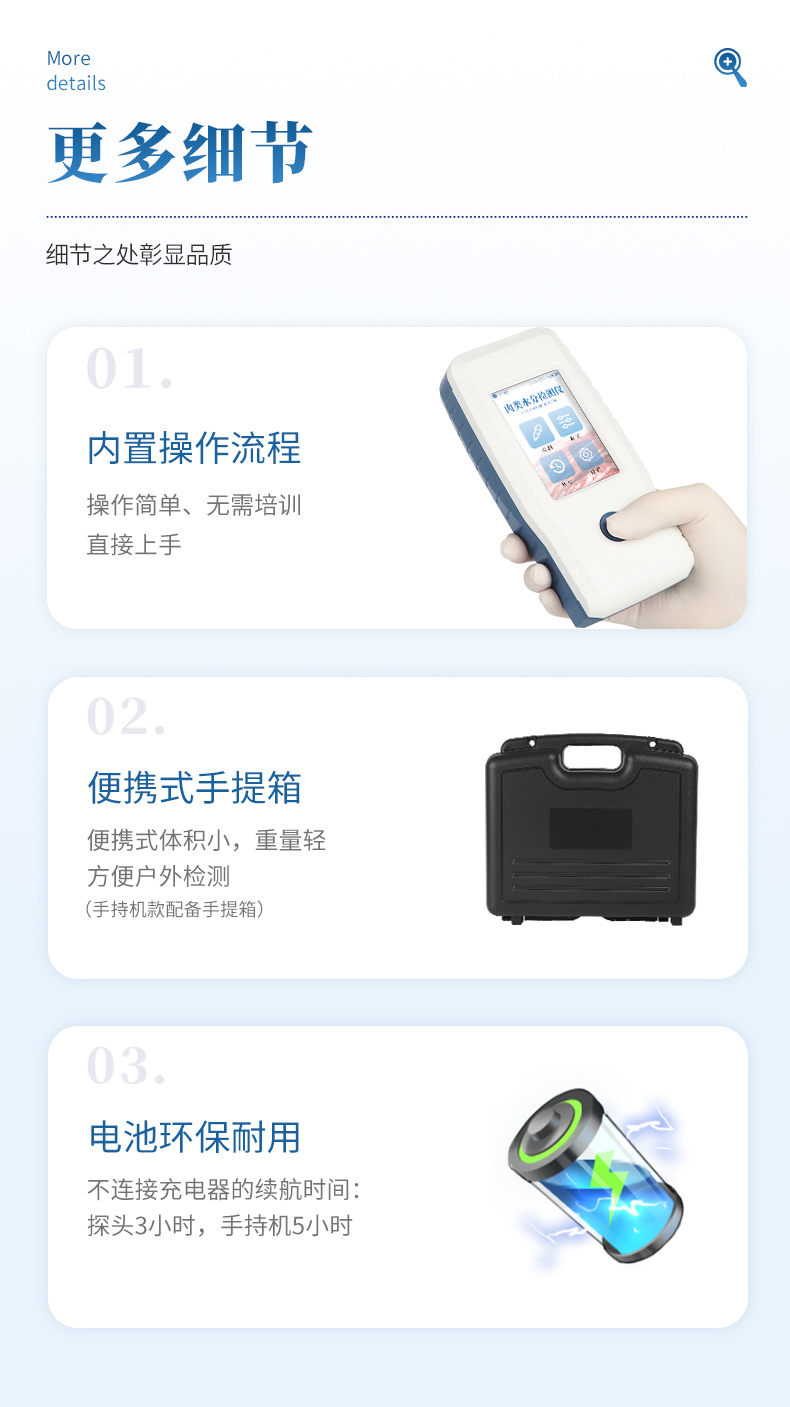 便攜式體積小,重量輕,方便戶外檢測(cè);