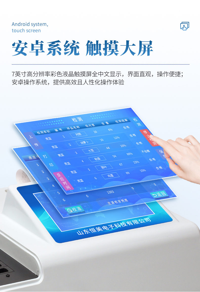 ●安卓操作系統(tǒng),采用更加高效和人性化操作,儀器具有網線連接、wifi聯(lián)網上傳、GPRS無線遠傳功能,快速上傳數據。