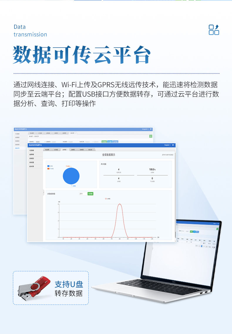 ●配置USB接口,支持U盤轉存,方便數據轉存至云平臺,通過平臺實現(xiàn)數據查詢、瀏覽、分析、統(tǒng)計、打印等。