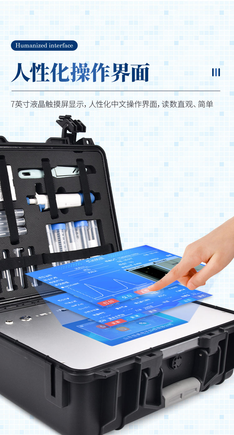 2、顯示方式:7英寸液晶觸摸屏顯示,人性化中文操作界面,讀數(shù)直觀、簡單。