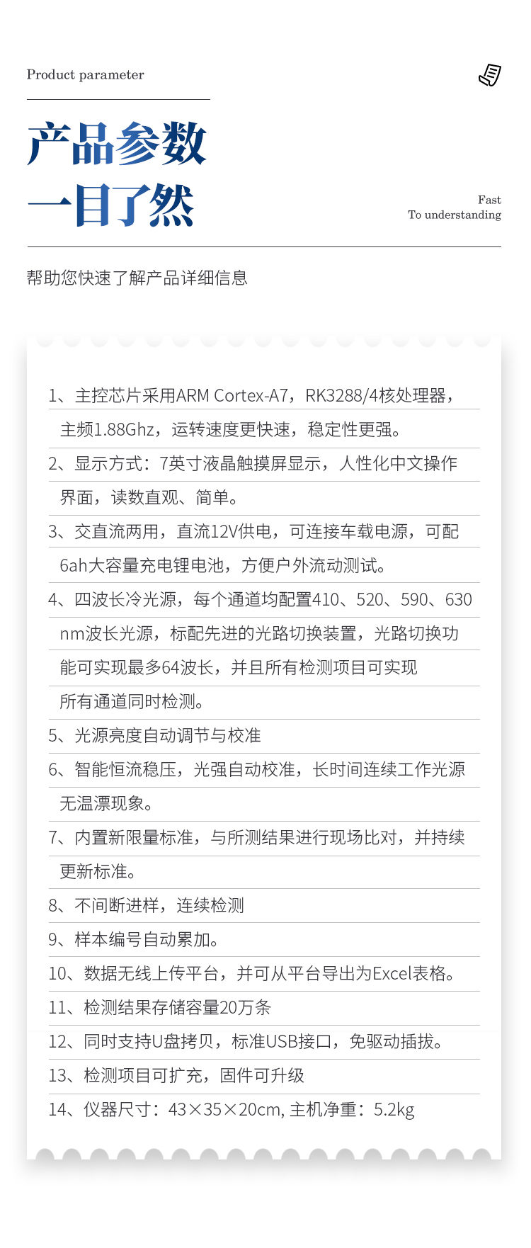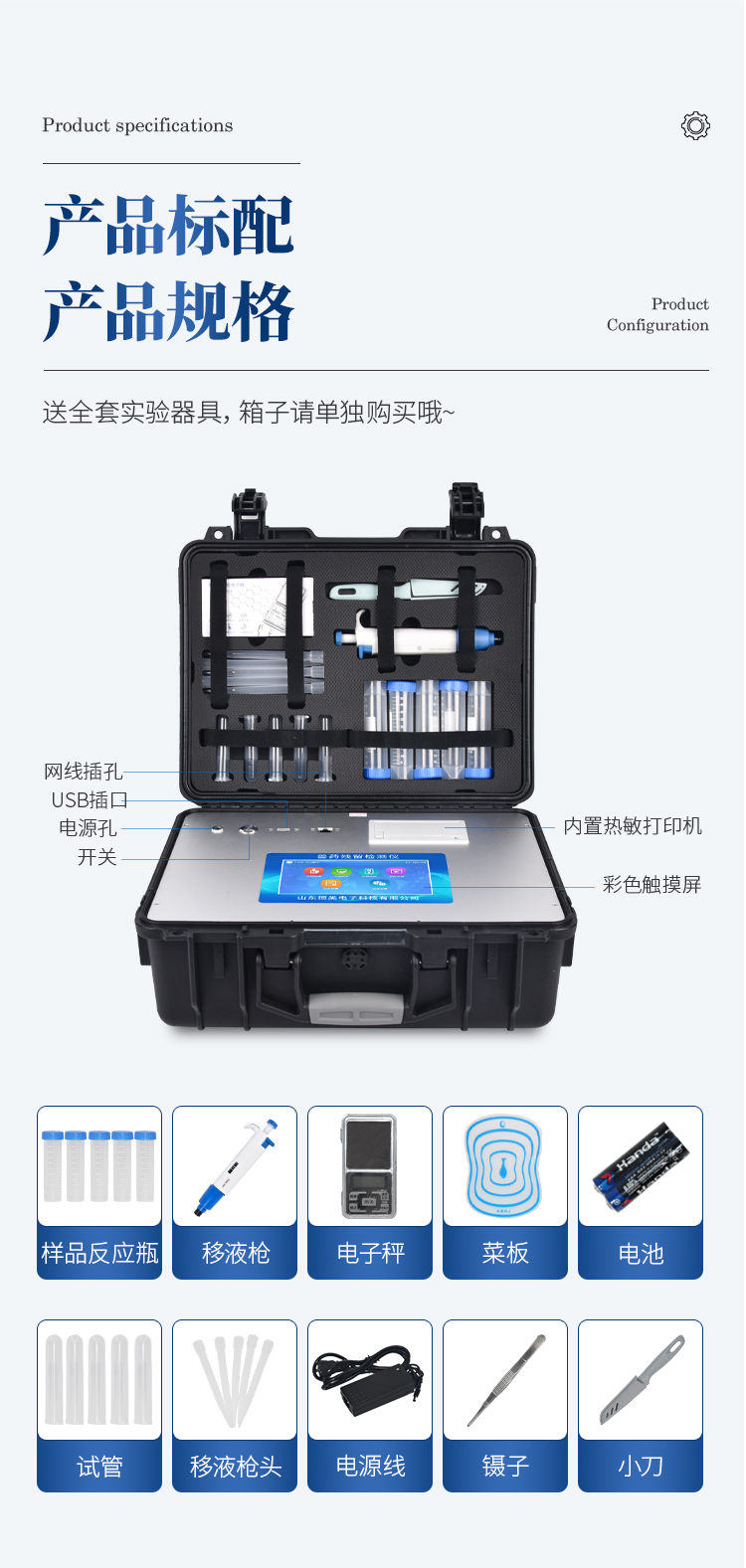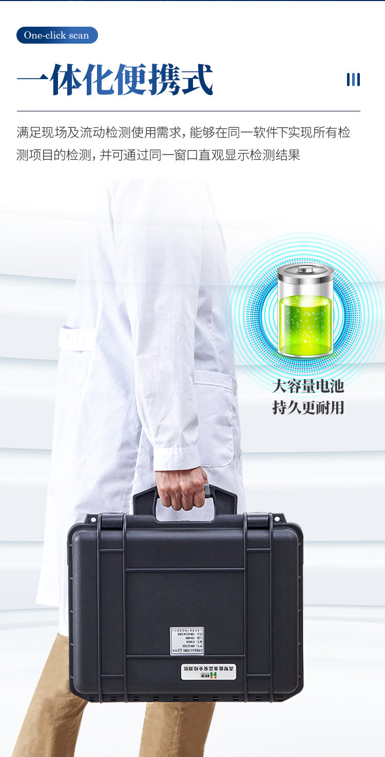 6、一體化便攜式快檢設(shè)備,滿足現(xiàn)場及流動檢測使用需求,能夠在同一軟件下實現(xiàn)所有檢測項目的檢測,并可通過同一窗口直觀顯示檢測結(jié)果。