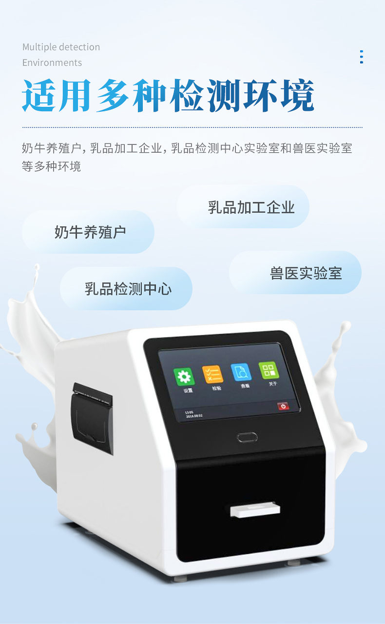 適用多種檢測環(huán)境:奶牛養(yǎng)殖戶,乳品加工企業(yè),乳品檢測中心實(shí)驗(yàn)室和獸醫(yī)實(shí)驗(yàn)室等多種環(huán)境。