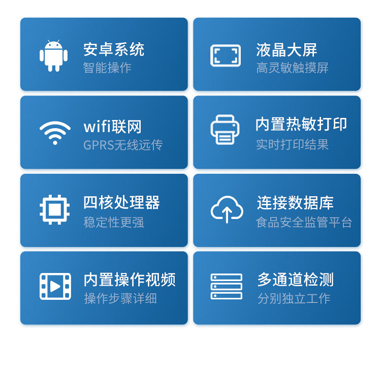 10、支持Wifi網(wǎng)絡(luò),數(shù)據(jù)可局域網(wǎng)和互聯(lián)網(wǎng)數(shù)據(jù)上傳,檢測結(jié)果直接傳至食品安全監(jiān)管平臺。進行區(qū)域食品安全監(jiān)管及大數(shù)據(jù)分析處理,檢測區(qū)域食品安全長短期動態(tài),達到食品安全問題預(yù)估、預(yù)警
