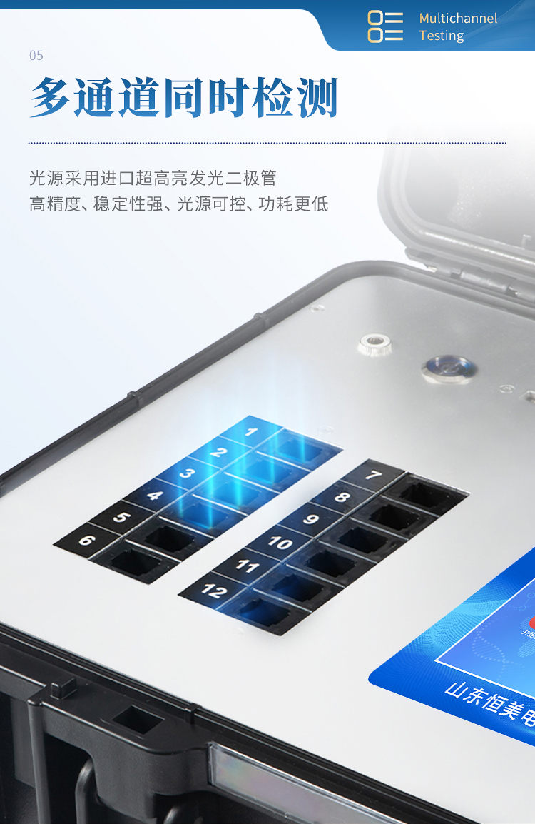 6、檢測通道:12檢測通道,可以同時測試多個樣品,每個樣品由程序控制分別獨立工作,不會互相干擾。