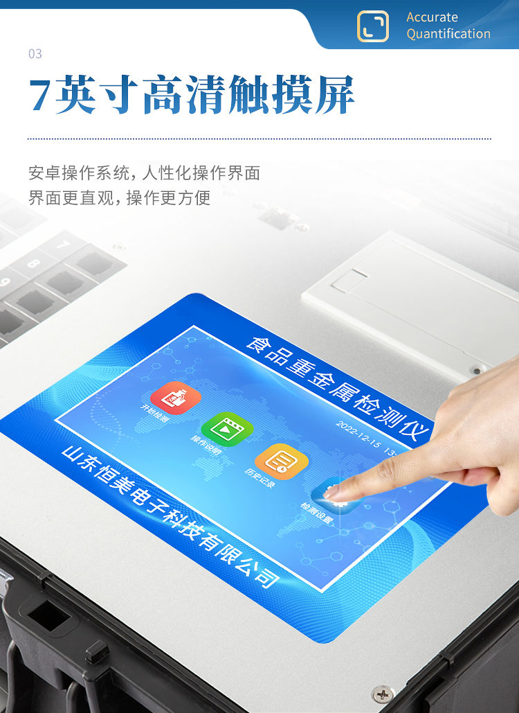 2、安卓智能操作系統(tǒng),7英寸高靈敏真彩觸摸屏,更加高效和人性化操作界面,讀數(shù)直觀、簡單。